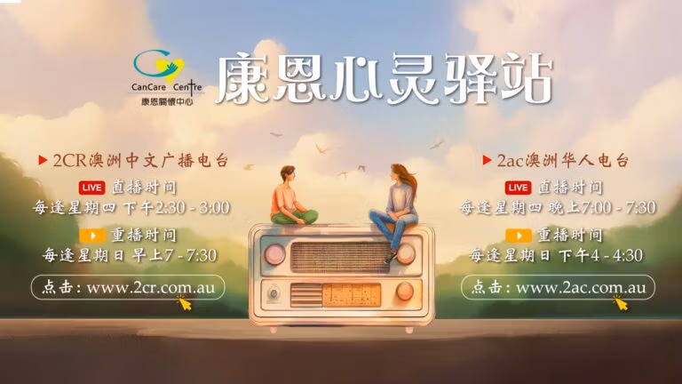 社區活動及最新消息活動/消息最新活動所有活動 →康恩心靈驛站——康恩普通話節目將在 2AC & 2CR 兩大澳洲中文電台播出✨ 首播日期:2026年3月5日 ✨ 由康恩關懷中心精心製作,《康恩心靈驛站》陪伴… 了解更多 →康恩關懷中心19週年感恩晚會你是我的鄰舍——無私服侍、以愛傳愛 表揚康恩同工和義工為病人無私的擺上和付出。鼓勵到場者成為義工的一員和介紹病… 了解更多 →《康恩伴你行》2026全新啓程親愛的聽眾朋友們,我們又將在2月18日晚電波中相遇啦! 備受期待的 《康恩伴你行》 本週全新啓程!這是一檔專注… 了解更多 →最新消息所有消息 →讓愛延續・邀請您一同守護癌症病友親愛的朋友: 感謝您一直為「康恩」代禱與支持,2026嶄新的… 了解更多 →【同路迎新春・愛在Surry Hills 康恩支持小組】2026年2月7日,Surry Hills 康恩支持小組舉行… 了解更多 →【Castle Hill支持小組喜迎新春・同享恩典】2月14日是Castle Hill支持小組慶祝新春的特別聚會… 了解更多 →《揮毫納福迎駿馬 ,友情相聚送蛇年》Hurstville 支持小組2月14日是南區支持小組2026的第一個活動日,適逢中國農曆… 了解更多 →【康恩傳媒雙場演出 以愛傳遞盼望與喜樂 】2月14日康恩關懷中心傳媒部昨日共有11位成員,攜著喜劇《康… 了解更多 →【康恩關懷中心 丙午年新春祝福】親愛的康恩的家人與朋友: 願那「從歲首到年終,耶和華的眼目時… 了解更多 →活動剪影所有活動剪影 →【康恩傳媒雙場演出 以愛傳遞盼望與喜樂 】2月14日康恩關懷中心傳媒部昨日共有11位成員,攜著喜劇《康… 了解更多 →【Chatswood 癌症支持小組2月 14 日聚會】經過聖誕和新年, Chatswood 癌症支持小組 今天開始… 了解更多 →【康恩開心步行組今年首次漫遊皇家植物公園】2026年2月20日,康恩開心步行組今年的頭炮活動正式展開!… 了解更多 →小組活動剪影所有小組活動剪影 →【同路迎新春・愛在Surry Hills 康恩支持小組】2026年2月7日,Surry Hill… 了解更多 →【Castle Hill支持小組喜迎新春・同享恩典】2月14日是Castle Hill支持小… 了解更多 →《揮毫納福迎駿馬 ,友情相聚送蛇年》Hurstville 支持小組2月14日是南區支持小組2026的第一個… 了解更多 →Lidcombe支持小組聖誕感恩會回顧-【風雨中的感恩與愛】康恩 Lidcombe 支持小組於 20… 了解更多 →