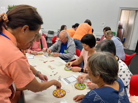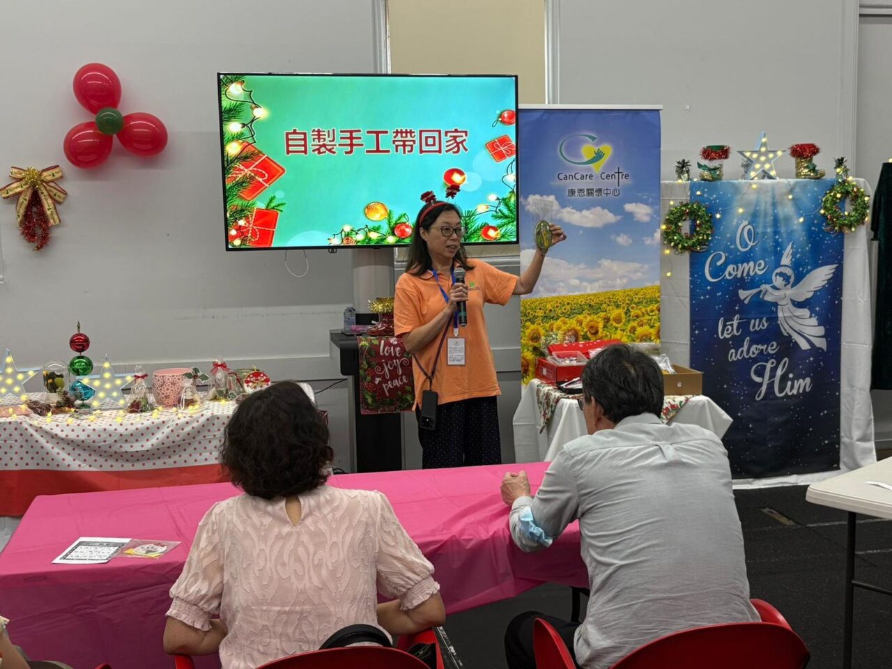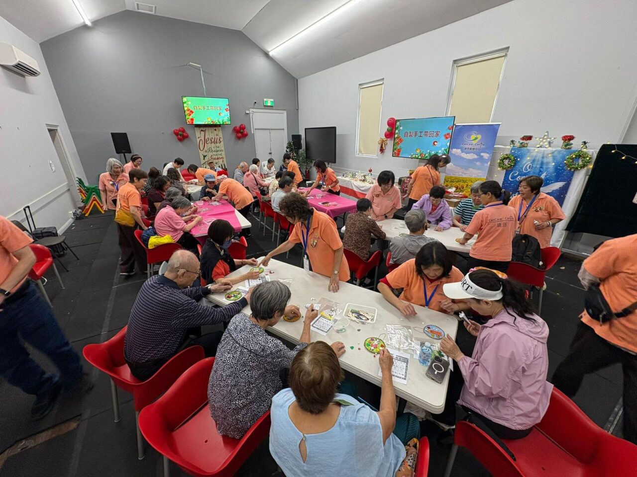 隨後進入小手工環節,各人在義工帶領下親手製造色彩繽紛聖誔小裝飾品。大家一邊動手製作,一邊彼此交流,笑聲與溫暖自然流動。完成後,全體展示其作品一同合照,留下美好的回憶。