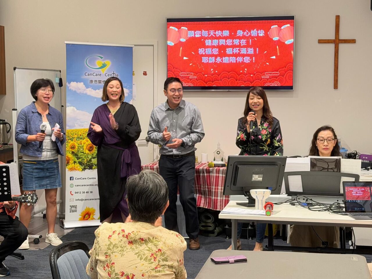 正值2月 14 日 情人節, 再加上迎接農歷馬年新一年, 今日的主題是” 歡 歡喜喜慶新年, 輕歌曼舞迎新春” 。 我們特別邀請到陣容頂盛的康恩傳媒組為我們表演獻唱應節新年歌和音樂劇 。歌曲寓意舊事已過, 新年新的故事, 新的方向, 還祝願大家身心愉快, 健康常在。之後的音樂劇 ” 康恩好聲音” 又搞笑又有意思, 大家都笑續顏開, 真是名附其實的 ”輕歌曼舞迎新春”. 特別感動是其中還有一位Chatswood 癌症支持小組的關顧者也加入了傳媒組來為我們表演
