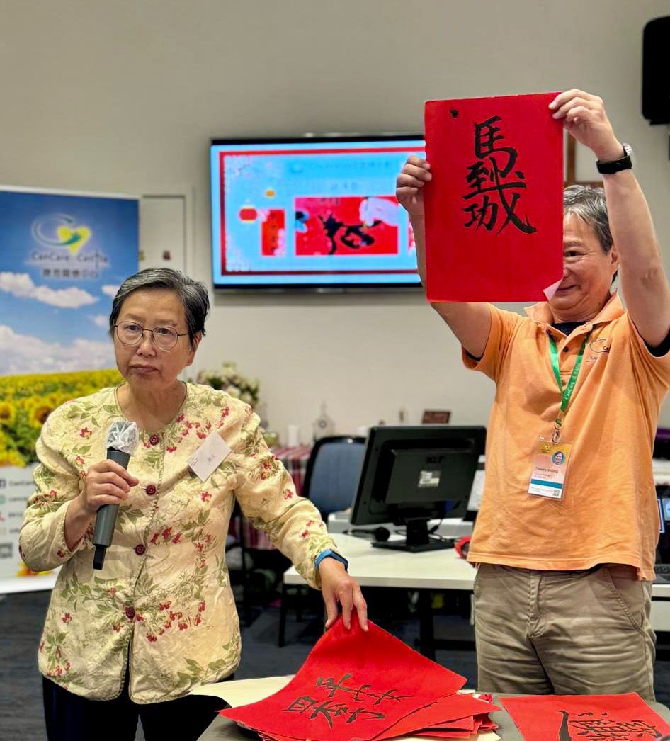 跟著一位病友為大家講解 各種馬年輝春的寫法 和毛筆字的技術, 估吾到輝春的 ”馬” 字都可以有多種不同的寫法