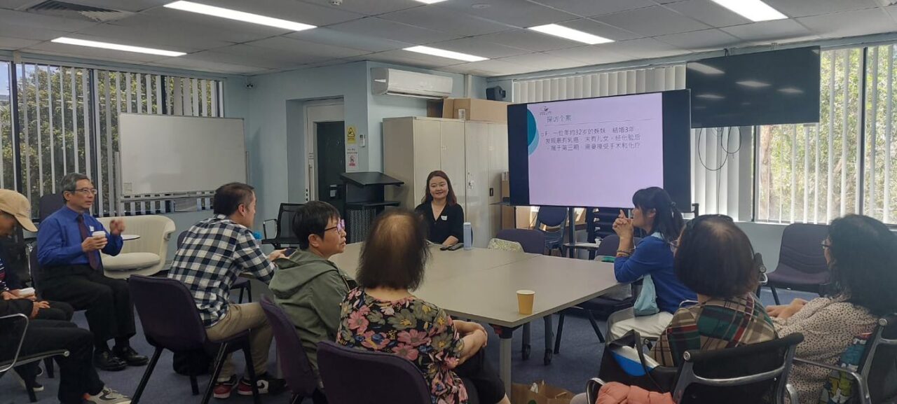 活动/消息›活动剪影23/11/2025Lidcombe 天恩长老会-康恩事工分享 11月23日,康恩关怀中心受 Lidcombe 天恩长老会 的邀请,前往分享康恩的事工。 因为康恩是他们「大使命基金」所支持的机构之一,我们十分感恩能有这次机会。 聚会结束后,康恩同工亦留下来,分别向普通话及粤语的弟兄姊妹作更深入的分享,并一起探讨有关生死教育的议题。 大家的交流非常深入、具体,也让我们看到教会弟兄姊妹对这方面的关注与需要。 我们期待日后能与天恩长老会有更多连结,并盼望康恩能够继续服事、帮助更多有需要的弟兄姊妹。 相关项目活动剪影 →轻松步行组迎来2026 年第一次步行活动立即看看 →【同路迎新春・爱在Surry Hills 康恩支持小组】立即看看 →【Castle Hill支持小组喜迎新春・同享恩典】立即看看 →《挥毫纳福迎骏马 ,友情相聚送蛇年》Hurstville 支持小组立即看看 →【康恩传媒双场演出 以爱传递盼望与喜乐 】立即看看 →【Chatswood 癌症支持小组2月 14 日聚会】立即看看 →【康恩开心步行组今年首次漫游皇家植物公园】立即看看 →轻松步行组迎来2026 年第一次步行活动立即看看 →【2026 康恩關懷訓練加油站】立即看看 →康恩关怀中心在香港中国基督教播道会窝打老道福音堂举行生死教育立即看看 →Lidcombe支持小组圣诞感恩会回顾-【风雨中的感恩与爱】立即看看 →【活动回顾|「无常. 有序」生死教育分享会】立即看看 →
