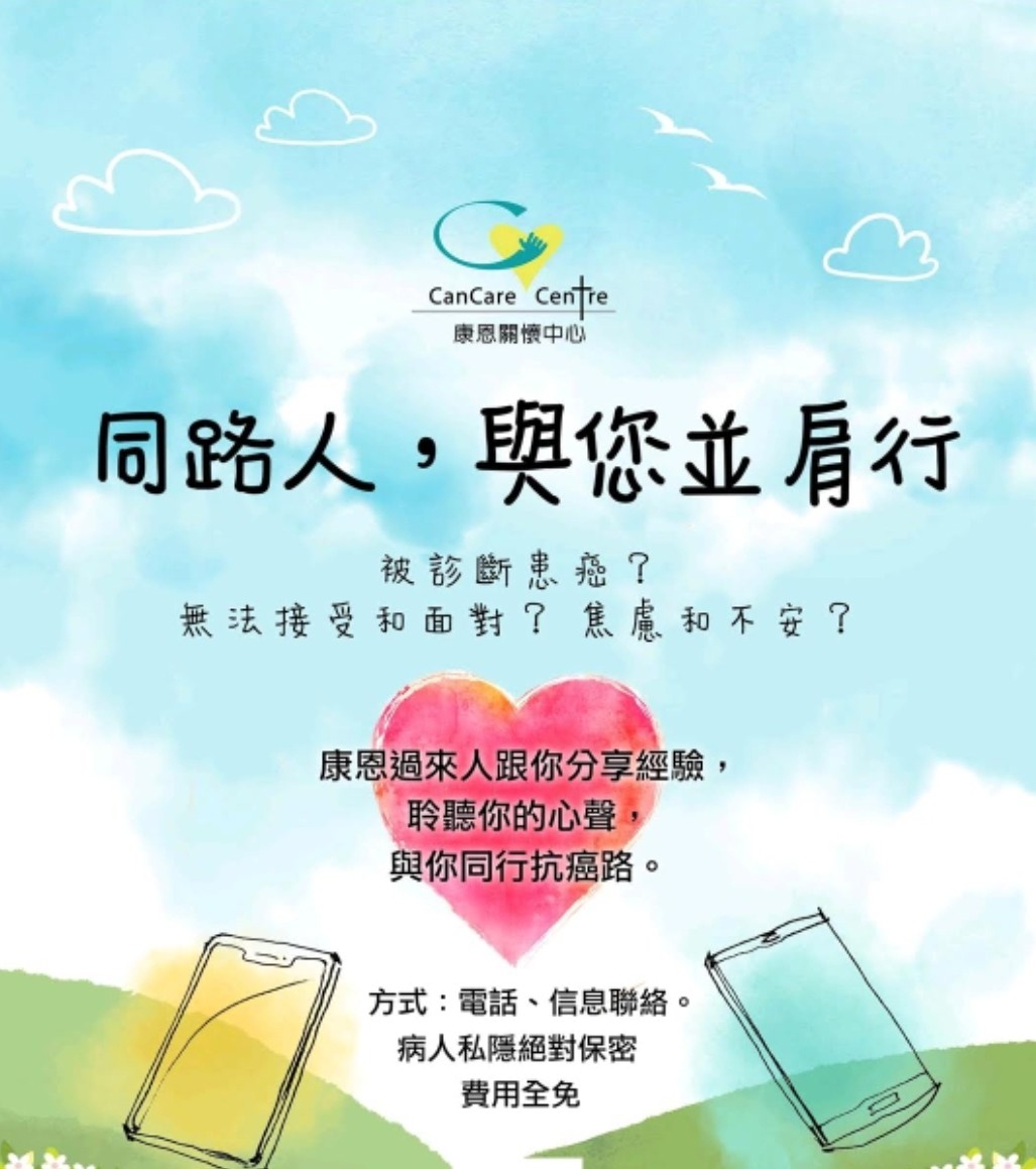 曾经历癌症或曾陪伴至亲面对癌症的义工,会以过来人的角色,透过电话交谈和讯息传达,鼓励和支持现患上癌症而感到徬徨和焦虑的病患者及其家属, 并肩同行抗癌路!